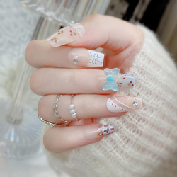 אירופאי אמריקאי עיצוב מרובע ארון הקבורה מלאכותי מסמרים כחול נצנצים טיפים טיפים ארוכים לשימוש